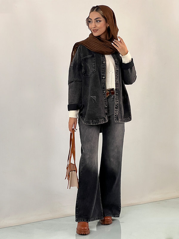 اگر به دنبال تنوع هستید، شلوار جین کارگو را با یک تاپ کراپ و یک کت جین اورسایز امتحان کنید. شلوار کارگو با جیبهای بزرگ و فرم آزادش، حس کاربردی و خیابانی را به استایل میافزاید و با تاپ کراپ، تعادل خوبی ایجاد میکند. کت جین اورسایز هم لایهای اضافی به استایل شما میدهد و حس مد روز را تقویت میکند. برای اکسسوری، یک کیف کمری کوچک یا یک زنجیر بلند فلزی اضافه کنید. این جزئیات، استایل خیابانی را شخصیتر و چشمگیرتر میکنند.