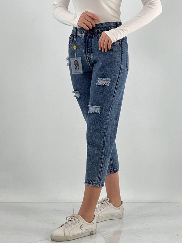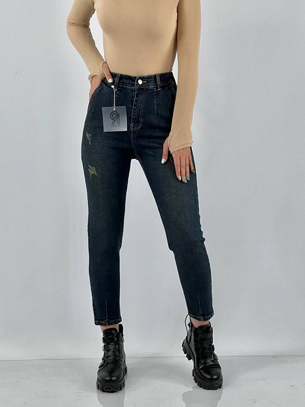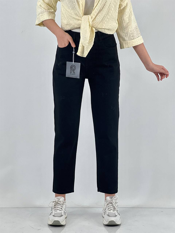 راه حل: شلوار مام استایل باید روی خط کمر طبیعی یا بالاتر پوشیده شود. این ویژگی کلیدی این مدل شلوار است.