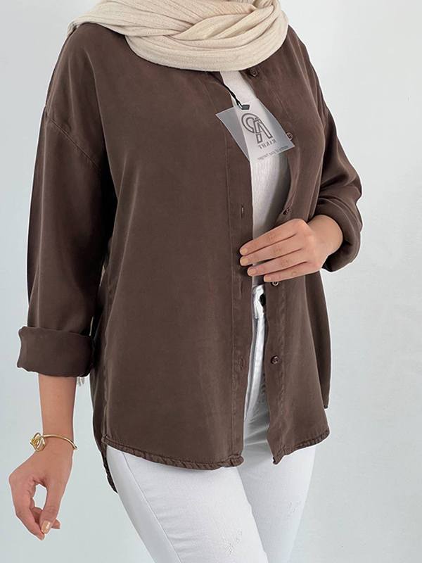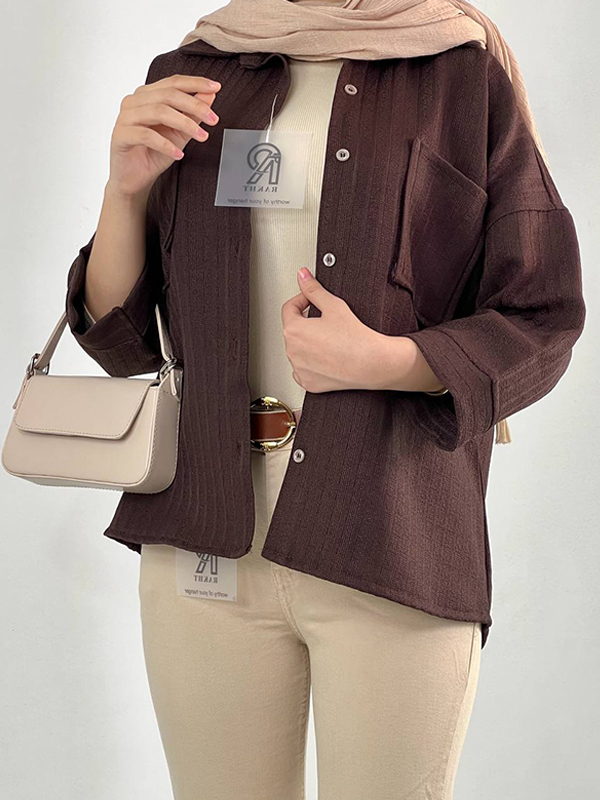 شومیز قهوهای لین یا کتان نیز برای فصلهای گرم گزینه عالی است زیرا تنفس پوست را فراهم میکند و حس طبیعی و راحتی منتقل میکند.