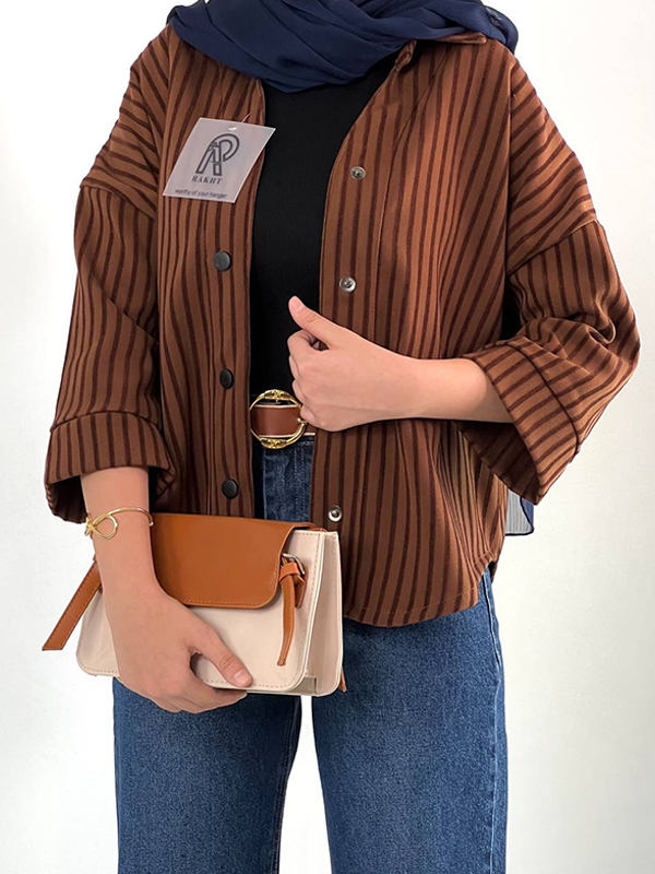 شومیز قهوهای طرحدار نیز تنوع جذابی ایجاد میکند.