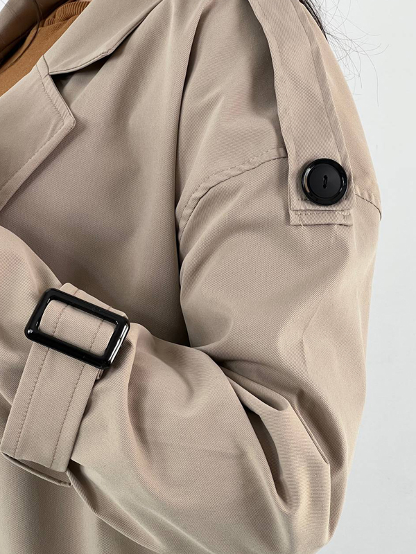ترنج کت معمولاً دارای طول متوسط تا بلند، یقه برگردان، کمربند و بندهای ترنج روی شانه است. همین جزئیات باعث میشود ظاهر کت شیک و خاص به نظر برسد.