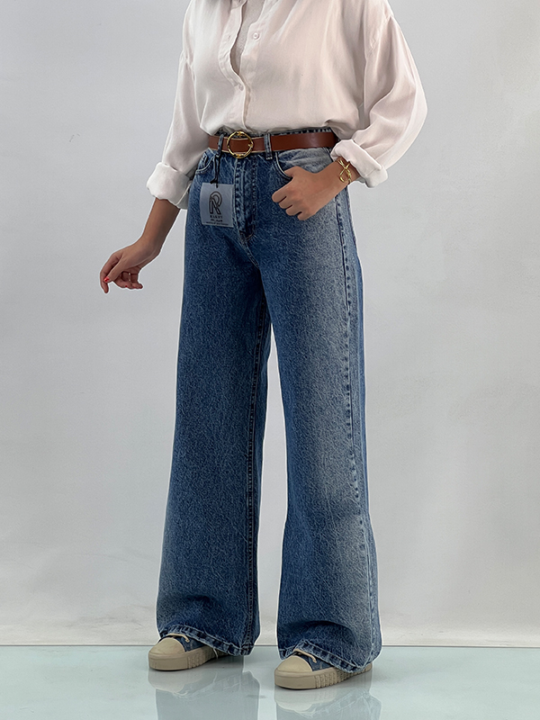 شلوار بگ سنتی با کمر متوسط و فرم یکنواخت گشاد در تمام قسمتها شناخته میشود. این نوع معمولاً از جنس جین یا کتان ساخته میشود و برای استایلهای کژوال مناسب است.