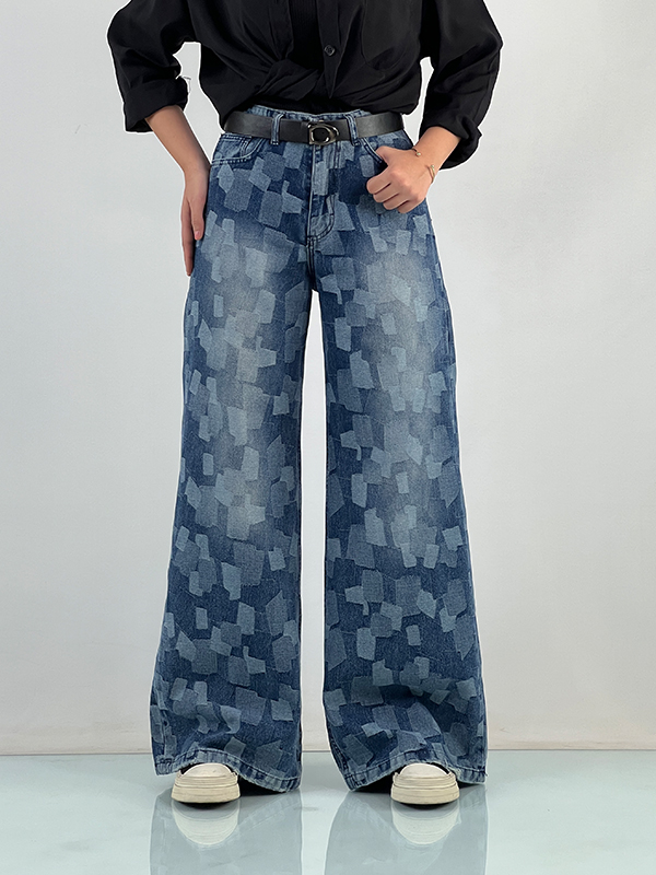 شلوار بگ با قطعات هنری و پرینتهای خلاقانه.